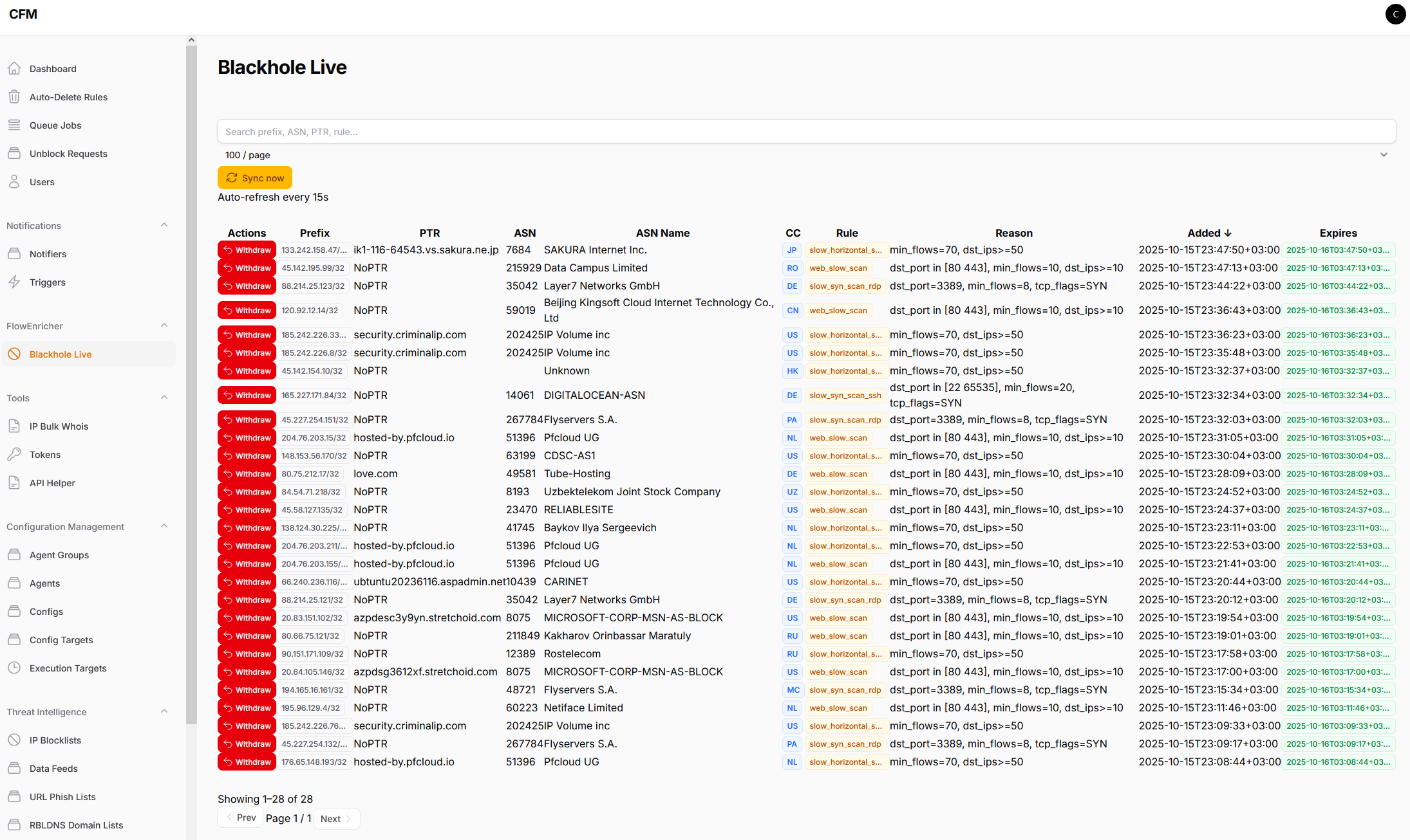 Timed withdrawals are supported too — a prefix will automatically be withdrawn after blackhole_time expires.